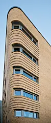 Sett ovenfra er bygget formet som en H. Bærende konstruksjon består av plattendekker, plasstøpte veggskiver og noe stål i gavlfasader. Taket er flatt, isolert og tekket med papp. Fasadene har teglforblending og innslag av båndtekket sink. Innvendig er det gips og stålstender, belegg på gulv, systemhimlinger i fellesareal og faste himlinger i hyblene. Badene er levert som baderomskabiner. Det ble praktisert rent bygg under oppføringen. Vinduene er inntrukne og har beslag av aluminium. Teglfasaden er tilnærmet vedlikeholdsfri.