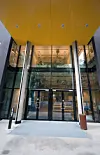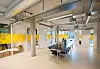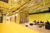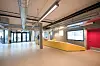 Westerdals har inngangspartier i øst og vest, og man kan se gjennom hele etasjen fra det ene til det andre. Sort og gult preger interiøret. En åpen himling sammen med frilagt og støvbundet betong gir et tidsriktig, røft industripreg.