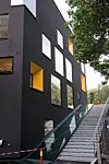 Den sorte fasaden er en tradisjonell bindingsverksvegg med et luftet pussystem. Kontrastene i enkelte inntrukne karnappvinduer med gul besetning forsterker det sorte volumet. Det er vanskelig å lese de klare etasjeskillene i bygget, siden vinduer er tilsynelatende tilfeldig plassert i fasadene.