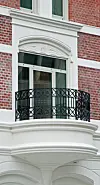 Taket er delvis flatt og delvis skrått og bæres av en tømmerkonstruksjon og er tekket med glaserte taksteiner. Fra gatenivå er det vanskelig å se de to øverste etasjene.