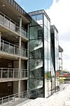 Selve fasaden er av tegl med glass i heis og trapperom, og vinduene er aluminiumsbelagte slik at de er vedlikeholdsfrie. Brannforskriftene er tilfredstilt ved at det i svalgangen, som også er rømningsvei, kun er benyttet ubrennbare materialer. Vannbåren varme står for oppvarmingen av bygget.