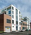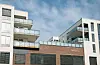 – Prosjektets boligdel er utført med fasadesystem av fiberpuss på sementbaserte plater, og med lys pussfarge. Veggflater ved tilbaketrukne balkonger er utført med utvendig kledning av liggende trepanel. Yttervegger i første og andre etasje er utført med teglforblending. De vertikale veggfeltene i forlengelsen av boliggavlene, er utført med samme puss-system som boligene.