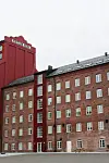 – Fasadene er tilbakeført og vinduene er skiftet ut fra Husmorvinduer til sitt opprinnelige utseende. Jernvinduene i feltet med trekledning er tatt ut og pusset opp. Trådglass er erstattet med isolerglass. Det var produksjon her helt fram til 1990-tallet, og bygningen har vært løpende oppgradert i driftsperioden, slik at de siste bygningsmessige delene som sto her, ble ført opp på 80-tallet. En del av dem er fjernet. Trekledningen ble antagelig satt opp i forbindelse med ombygging på 50-tallet. En har vært opptatt av historiske lag og lesbarhet gjennom tidene. De to eldste delene som er fra 1859 og 1870-tallet utgjør nå hybelhuset, forklarer han og legger til: Vi fikk tillatelse til å sette inn takvinduer, men ellers har vi måttet bruke bygget slik som det har stått. I fasaden er det kraftige muranker i trebjelkelaget over annen etasje og litt mindre i etasjene høyere opp. De er med på å stabilisere konstruksjonene. Det er lagt til rette for studentkafe på bakkeplan, men den blir foreløpig ikke realisert på grunn av manglende finansiering. Nå har Studentsamskipnaden i Vestfold kjøpt bygningen, og det er opp til dem å videreføre prosjektet, påpeker Bjørnstad.