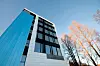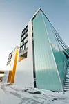 – Vårt grep var å splitte opp trinnene, og på den måten skape variasjon og motvirke massiviteten. Et annet grep var å la bygget få et lyst uttrykk som en motvekt mot den mørke åsen, forklarer Rønsen som også tegnet Ericssonbygget på Lensmannslia for ti år siden.
