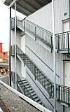 De 16 leilighetene er fordelt over fire etasjer i de to bygningskroppene, som igjen er forbundet i de tre øverste etasjene med gangbruer med glassrekkverk. Mellom disse på grunnplanet er det en carportløsing for åtte biler, samt rom for avfallshåndtering, tekniske rom og inngang til felles heis. Inngang til leilighetene skjer via svalganger.