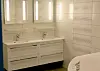 – Disse skal tilfredsstille krav om universell utforming, dvs. terskelfrie overganger. De skal ha tilstrekkelig isolasjon i forhold til underliggende rom, samt ha en overflate som framstår som «eksklusiv». Den største utfordringen var å etablere avrenning fra de mange nivåene og sideveis-sprangene i bygget og finne et sted å lede vannet. Til tross for flere utfordringer enn i «normale» boligprosjekt er Strålberg godt fornøyd med prosjektet. Noe de fleste medvirkende er enige i.