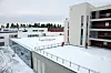 Tre av blokkene ligger oppå næringsarealene, den fjerde ligger på mark mot vest. Alle har direkte heis ned i parkeringsarealene.