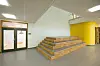 – Når skolen er formet såpass rett og tydelig er det viktig å innføre noe i innvendig gangstruktur som bryter følelsen av en lang korridor. Grupperommene trer tydelig ut i gangarealet og bidrar i omgivelsene med form og farge. Gjennomlys er også et viktig grep og gir en utvidet romfølelse, forklarer Nygaard.