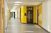Strukturen i skolens gangarealer uthever seg, også bokstavelig; korridorveggene i hver fløy er ikke parallelle.