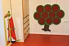 – Små mellomsoner er utnyttet som små nisjer. Overganger mellom ganger og rom som barn elsker å leke i og «gjemme seg bort» i. En i gjennomgang fra gang til spiserom, en i gang mellom(og under!) amfi og småbarnsavdeling og vannleik. Småbarnsavdelingen (de minste barna) er i den delen av bygget med best mulig adkomst til flatt og lett terreng. Her er også god kontakt med hovedadkomsten til barnehagen. Lave vinduer / «vinkevindu» er tilpasset de små barna.