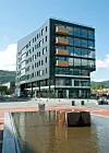 parken på Strømsø i Drammen, ønsker å være både innovativ og visjonær. Kanskje ikke overraskende at Norges første kontorbygg som er prosjektert og bygget etter FutureBuilts kriterier, nå står ferdig nettopp ved Drammenselvas bredder.