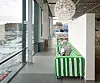 Taket består av isolerte q-dekker som er tekket med folie og belagt med et sedumtak. Taket bæres av 1.400 tonn med gitterdragere og stålfagverk.