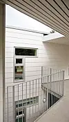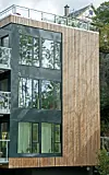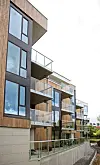– Vi har valgt fasadematerialer som gir bygget et nedtonet uttrykk størrelsesmessig. Ved å la fargene henge sammen, blant annet de svarte feltene rundt vinduene, har vi prøvd å gi bygget en samlet og ryddig form. Svalgangene på baksiden får dagslys ovenfra og gir rom for private soner ved inngangsdørene.