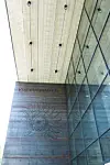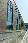 Utvendig har Hille Melbye Arkitekter formet en ny fasade med rene linjer og store glassfasader som spiller opp mot den gamle robuste murarkitekturen. Hovedinngangen deler dette volumet i to, men taket binder det hele sammen. Martens forteller at den høye ledeveggen inn mot hovedinngangen er kledd med Corten for å knytte noen bånd tilbake til den gamle virksomheten i hallen.