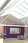 – Vi forsøkte å få frem synlig tegl innvendig, men den var i så dårlig forfatning at det ble umulig. Interiøret er gitt et industrielt preg med blant annet en del eksponert betong i himlingen ut mot Hasleveien. En del av kanalføringene av metall, bæringen og brannmalte takstoler i stål er synlige og understreker det industrielle preget. De opprinnelige fagverksdragerne var ganske tynne og smekre, men det var veldig mange av dem. Vi har laget noen færre, men de er fortsatt fagverk, påpeker Heier. De originale takvinduene er erstattet og nye takvinduer ligger på samme sted, men er litt større.