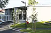 – Det sto igjen et L-formet skall som det nye bygget ble bygget inni. Det gamle bygget framstår som det tyngste, mens nybygget framstår anonymt og enkelt med grå plater og svarte vinduer. Men skråstagene «spriter opp» og skal være stativ for klatreplanter. Man oppfatter glasset og de svarte sprossene i vinduene, men ikke det som ligger bak. På grunn av at vi måtte grave en meter ned ble konsollene synlige. Det er lagt en kasse rundt konsollene som brukes til sittebenker.