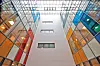 Fasadene har forblending i lys tegl med innslag av royalimpregnert trekledning. Andre etasje i den bølgete fasaden er i glass og båndtekking av metall. Det er skiferfliser i lobby og i trapper. Ellers i bygget er det gulvbelegg med hulkiler. De fleste veggene er plassbygde gipsvegger på grunn av strenge lydkrav. Bygget har systemhimlinger, faste gipshimlinger og sikkerhetshimlinger. I midtfløyen er det et takhøyt atrium med fargerike glassvegger.