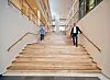 – Blokkene har store kontorlandskap med mange arbeidsplasser og det har derfor vært et viktig grep å forme mellomrommet som et sted for kommunikasjon. Langs gangbrosystemet som strekker seg langs begge sider og på tvers av gårdsrommet skal det være mulig å finne plass både til uformelle møter og telefonsamtaler. Her treffer man kolleger fra andre avdelinger og her kan man hvile blikket på den flotte utsikten når en har stirret litt for lenge inn i dataskjermen.