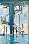 Inne i bygget finner du et 25 meters idrettsbasseng med seks baner og et stupetårn med 1 meter og 3 meter sviktbrett, samt 3 meter og 5 meter fast plattform.