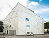 – Museet ligger godt synlig, strategisk plassert i enden av bygningsrekken, og det skiller seg fra de andre bygningene med sin hvite krystallinske form og de skrå gesimslinjene. Fasaden er kledd med hvitt glass, med et nett av skråstilte linjer som bruddlinjer i en isblokk. Linjene inneholder LED-lys som om natten markerer linjene og understreker husets særpreg.