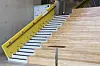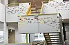 – Brua fra katedralskolen over til parken er en ren stålkonstruksjon – en slags oregamifigur – for å bli stiv og sterk nok. Den består av 8 millimeter tykke stålplater som brettes. Brua kom i biter og ble sveiset sammen på stedet. Inne i huset går dette formingsprinsippet igjen i trappene og i gelenderet. Vi fikk laget stressanalyser, fargelagte tegninger som viser hvor kreftene i konstruksjonen oppstår. Der hvor det var minst påkjenninger kunne vi lage huller og ta vekk stål. Ideen er tatt fra et noteark fra de gamle mekaniske pianoene som hadde bånd med huller i. En slags formingslek, smiler han.