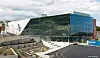 To bokser – i rød betong og glass – omslutter orkestersal og flerbrukssal.