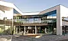 Gjerdeveien. Dette medfører også at deler av første etasje ligger inn under terrenget. På denne måten tilpasses skalaen i bygget til omkringliggende bebyggelse og friområde. Det er jobbet med store vinduspartier i fasaden for å gi senteret en åpen karakter mot omgivelsene. Det er også lagt inn overlys som trekker dagslyset ned i bygget.