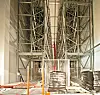 – Disse er utformet slik at hele bygningskroppen fremstår som et sammensatt og variert anlegg. Samtidig er dette samspill søkt understreket ved bruk av en mørk matrisepreget betongoverflate (høylager og transportkorridor), satt opp mot melkehvite, sprutpussete elementer på de respektive produksjonsavdelinger.