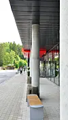 Utendørs er også endringene store. Det romerinspirerte inngangspartiet ligger nå i historien sammen med Romerriket. Det søylebårne taket over entreen er løftet bort, og et splitter nytt innendørs fellesareal er bygget utover det gamle inngangspartiet.
