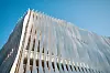 profiler, montert skråstilt på fasaden, gir dette et tredimensjonalt relieff med stadig skiftende formasjoner når man beveger seg langs ytterveggene. Myke linjer og spenstige kurver gir assosiasjoner til naturen.