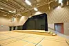 Bortsett fra dusj/garderober til fire elevenheter, to lærergarderober, treningsrom, teknisk rom og et mulig fremtidig areal for arrangementer (mulig fremtidig kiosk) i sørvest, utgjøres selve hovedarealet av aktivitetsflaten i hallen på 32 x 24 meter. Hallen har også en forhøyet scene, der ulike arrangement som konserter eller revyer, kan settes opp. De nederste delene av veggene i hallen er i malt betong og skal tåle hardhendt behandling. Veggflater over 2,75 m har vertikale trespiler med en lydabsorberende funksjon. Gulvet har et punktelastisk sportsgulv på PU/gummibasis med byggehøyde 12 mm på aktivitetsflaten.