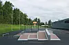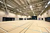 anlegg. Den nye hallen er trukket litt mot nordøst, og ligger der det tidligere lå en grusbane. Terrengfallet gir en øvre og en nedre del av anlegget.