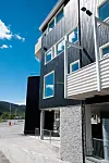 Sentralt plassert i Geilo sentrum står Geiloporten nå ferdig. Fra gateplan kan forretninger og kontorarealer synes å dominere. Men de 11 fritidsleilighetene på toppen må regnes som et urbant alternativ til fritidshytte i fjellheimen.