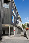 Inngangen til KIWI er i sør, med trapp/heis opp til forretningslokalene i etasjene over. Inngangen til leilighetene er en trapp via svalgangen i øst, eller direkte med heis fra parkeringskjelleren, som er felles med kundeparkeringen for KIWI. Det var tidligere planlagt en felles inn- og utkjøring til parkeringskjelleren. Det ble senere omgjort til en innkjøring fra vest, og med utkjøring i øst.