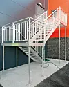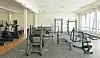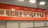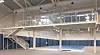 I servicedelen er det flis på gulvet i første etasje og sportsparkett (heltre eik på en cm fjærende pute) i andre etasje. Veggene består av gips og malt betong. Det meste av servicedelen har systemhimlinger.
