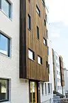 Ifølge Gustafsson har bygningene et moderne formspråk der samspillet mellom bruk av lys tegl og naturlig tre gir lyse og lette bygninger. Balkonger og terrasser har glass som hovedmateriale og har farger og mønster som gjør det funksjonelt skjermende. Innslag av klare farger på dekkeforkanter og inngangsdører er forfriskende og identitetsskapende. Fasadene er en blanding av lys Wienerberger Bratsberg tegl og royalimpregnert panel. Antall fasadematerialer er begrenset, noe som roer ned bygningsvolumene, og sammen med sort innslag på balkongrekkverk og vindusrammer strammes uttrykket opp.