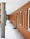 Bebyggelsen har svalgangsboliger og man kommer til boligene via svalgangene. Trappetårn med heiser bringer beboerne ned i P-kjeller. Med svalgangsbredde på 1,80 meter er det lagt opp til god plass slik at man opprettholder gode rømningsveier. Det er prosjektert inn vinduer med lav brystningshøyde på 40 cm i stue som skaper god kontakt med uteterrassen og i forhold til omgivelsene og nærmiljøet. Vi mener at vi har lagt byggene godt i terrenget og tatt hensyn til omkringliggende bygg, sier en fornøyd Meisal.