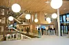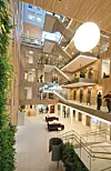 – Nordenga bru er en formgiver for prosjektet. Fra og med femte etasje har man fri utsikt over brua. Men man ser også under og gjennom den fra de lavere etasjene. Det var en av grunnene til at vi valgte å ikke legge kantina nederst eller øverst, men i femte etasje. Så vidt meg bekjent er det ingen andre prosjekter som har det. Plasseringen er med på å gjøre lysgårdsrommet til det mest spennende og innholdsrike i hele bygget, sier Biørnstad.