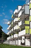 De lengste blokkene er opptil 45 meter lange med to oppganger, med en tett betongvegg som skille mellom oppgangene.
