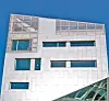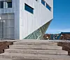 Fasadene er utformet med tanke på å forsterke formen ytterligere. Den består av en tett aluminiumsfasade med vinduer utformet som «striper og punkt». I skråavslutningen mot himmelen er det felt i strekkmetall. Slik blir formen både tett og delvis transparent.