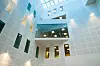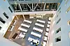 – Vi mener at dette gjør bygget mer interessant fordi overgangene løses opp. Den krystallinske formen gjør i tillegg at bygget endrer karakter sett fra ulike ståsted. Byggets store indre rom er atriet som er åpent opp i byggets fem etasjer. Glasstaket gir vakkert overlys ned til kantinen i første etasje. Fra alle etasjer er det god visuell kontakt til atriet, som slik danner felles romlig referanse for byggets ansatte, avslutter Tonje Broch Moe.