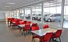 Det første som møter deg når du kommer inn inngangsdøren er for øvrig en stor serviceskranke hvor hvert av de fire merkene har et eget kontaktpunkt. Innkjøringen til de store verkstedhallene skjer fra siden eller bak bygget.