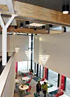 rommene. Ved siden av «eggene» er amfiet kanskje den mest iøynefallende detaljen inne. Det er nemlig en stor trapp i massivtre som utgjør sitteom-