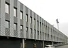 Taket over tribunen og fjerde etasje er svakt skrånende. Fasaden mot vest er kledd med sinusplater. I tillegg til to tekniske rom i fjerde etasje ligger det et teknisk rom i første etasje.