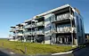 Blokkene er plassert rettvinklet nord-syd for å sikre fjordgløtt fra bakenforliggende bebyggelse.