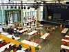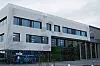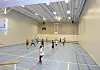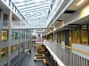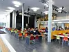 Når man kommer inn i skolen via hovedinngangen, kommer man inn i en stor kantine og festsal som domineres av en stor scene.