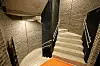 Et annet spennende element er trapperommet som strekker seg opp på den ene siden av bygget. Et kaldt rom preget av betong og den svarte teglsteinen, samt innslag av de oransje platene fra fasaden.