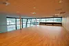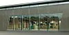 Det er glassfasader i fronten av midtkjernen og store glassfelt på sideskipenes gavlvegger. Sideskipene har langsgående vindusfelt rett under gesimsen. Hele fronten av bygget skråner fremover, som brua på et skip.