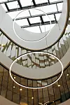 – Huset er bevisst forsøkt utformet så lite monumentalt som mulig. Selv om det er et stort bygg er det lavmælt og ikke spesielt symmetrisk eller stramt med høye monumentale inngangspartier. Det er tre likeverdige innganger fra forskjellige retninger og huset har ingen forside eller bakside, forteller arkitekt Geir Hermansen i Griff Arkitektur.