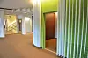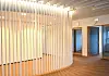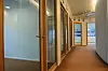 De gamle, sotede fasadeplatene i glass har blitt resirkulert som glassvegger og -dører inne i kontorlandskapet i Powerhouse Kjørbo.